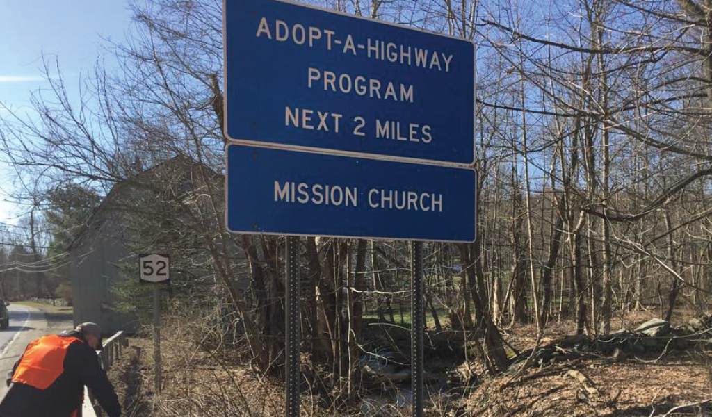Twice a year Samaritan Ministries leads a group of volunteers to clean-up the trash for one mile on Route 52 in front of the church.